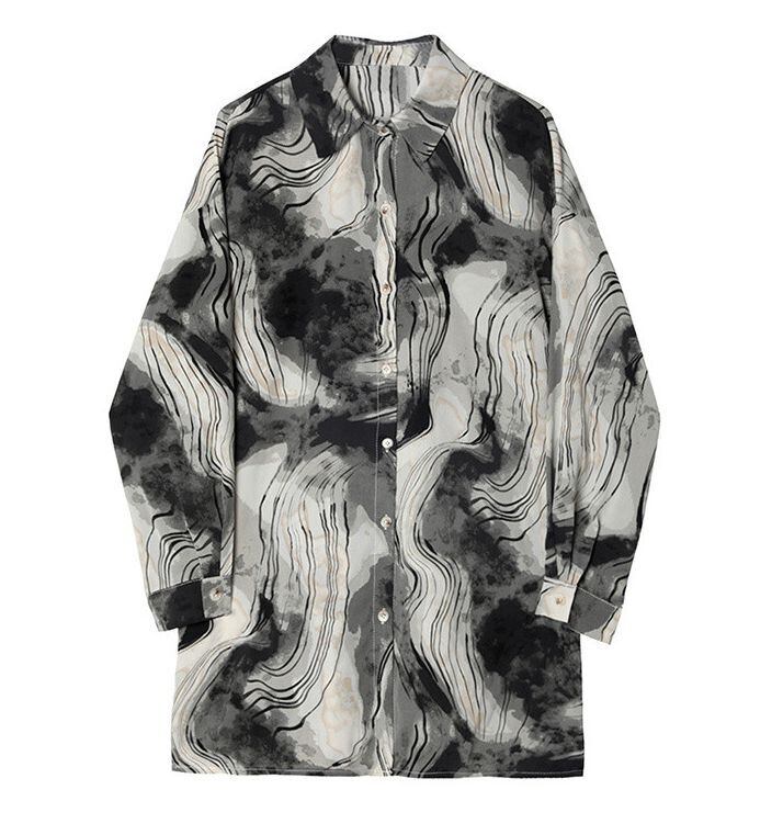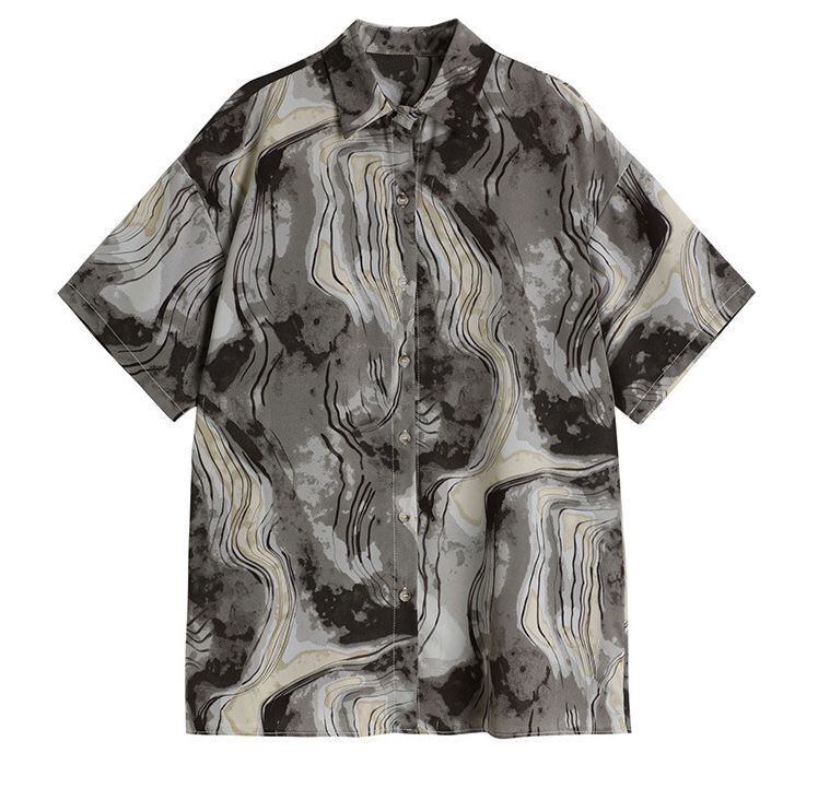 トップス シャツ ミディアム丈 袖あり 30929 半袖 長袖 襟付き スタンドカラー ストレート リボン おしゃれ かっこいい こなれ感 ラフ メンズライク ボーイッシュ ルーズ 個性的 クール 主役級 ストリート系 柄 マーブル 春 夏 秋 冬 2021 10代 20代 レディース お出かけ 休日 イベント 旅行 着回し 普段使い 重ね着 韓国系 ファッション 楽ちん 体系カバー 新作 定番 インスタ映え サイズ M L XL ブラック 送料無料