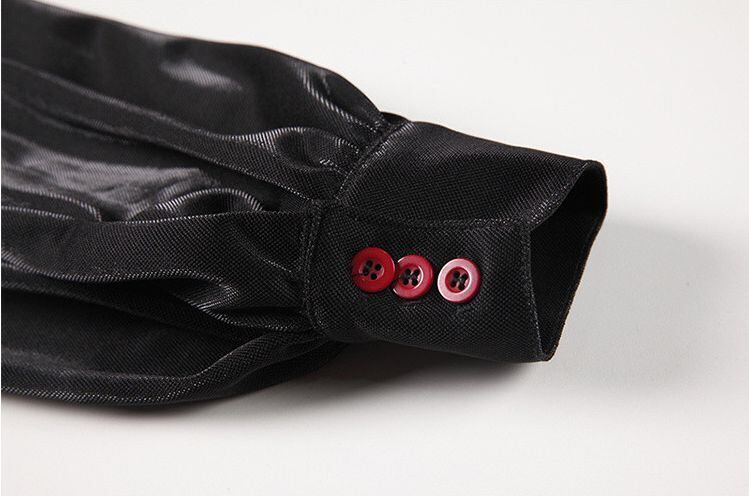 珍しい刺繍が目を引く、デザインシャツです。ベースの黒に、ポイントで赤が入っていてクールな雰囲気!ワイドパンツや、ゆるいシルエットのアイテムと合わせてメンズライクな着こなしもおすすめです。