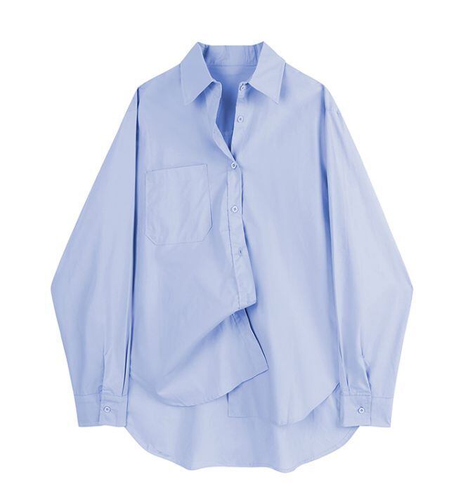 トップス シャツ ミディアム丈 袖あり 30948 長袖 襟付き POLO襟 ストレート ポケット 2way 大人可愛い きれいめ シンプル カジュアル おしゃれ 大人女子 こなれ感 ラフ キュート ルーズ フォーマル 無地 春 秋 2021 20代 30代 レディース OL デート お出かけ 女子会 休日 イベント 旅行 リクルート ホテル レストラン 着回し 普段使い 重ね着 韓国系 ファッション 楽ちん モテ 新作 定番 トレンド インスタ映え フリーサイズ 色展開 ライトブルー ピンク 送料無料