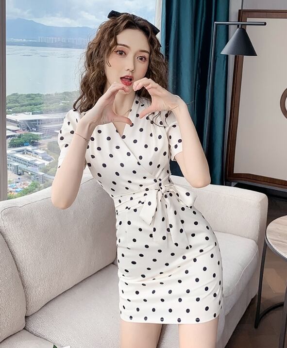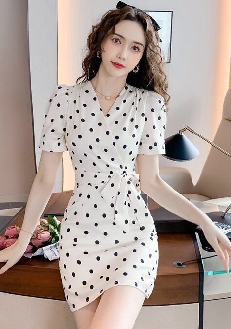 送料無料 ワンピース シャツ ワンピドレスミニ ひざ丈 ショート丈 半袖 Vネック 細身 透け感 かわいい レトロ 上品 モダン ラフ お洒落 シンプル 大人可愛い セクシー 水玉 春 夏 謝恩会 20代 30代 40代 韓国系 普段使い インスタ映え S M L XL 2XL 白 50602