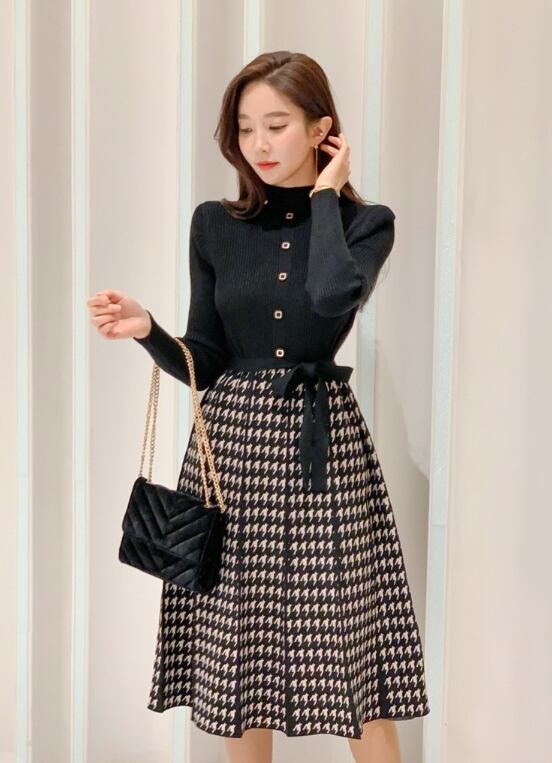 この2点セットは、タートルネックの長袖トップスとロングスカートの組み合わせが、