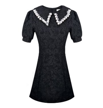 ■華やかな印象を与える襟付きAラインワンピース。レトロなデザインがかわいらしさと上品さを演出しています。薄手の素材なので、春から秋まで長く着用できます。ショート丈なので足元を強調し、女性らしいスタイルを演出します。