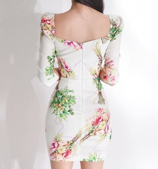 送料無料 ワンピース ワンピドレス ミニ丈 ショート タイトスカート 半袖 5分袖 二の腕カバー スクエアネック バックシャン Iライン スリム 細身 花柄 植物柄 大人可愛い 上品 おしゃれ お洒落 個性的 存在感 セクシー かわいい きれいめ シンプル 大人 存在感 脚長 美脚 春 夏 秋 20代 30代 40代 休日 パーティー イベント 女子会 レディース 女性用 デート お出かけ 休日 普段使い S M L XL 50634