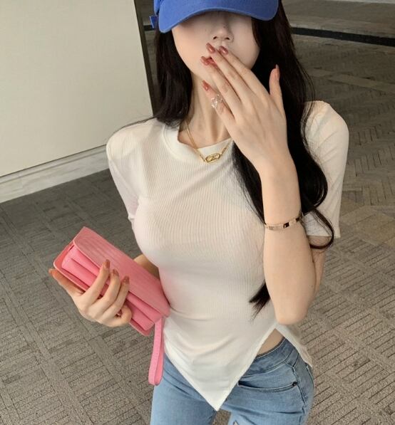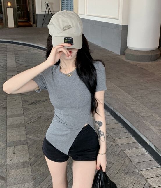 トップス Tシャツ 50067 半袖 かわいい 大人可愛い おしゃれ お洒落 ラブリー キュート ガーリー 存在感 無地 春 夏 20代 30代 デート 休日 お出かけ ワンサイズ グレー 白 黒 送料無料