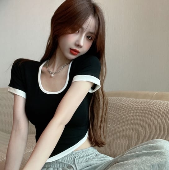トップス Tシャツ 50068 半袖 Uネック かわいい きれいめ シンプル ガーリー 存在感 おしゃれ お洒落 無地 春 夏 20代 30代 40代 休日 お出かけ ワンサイズ 白 黒 送料無料