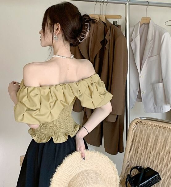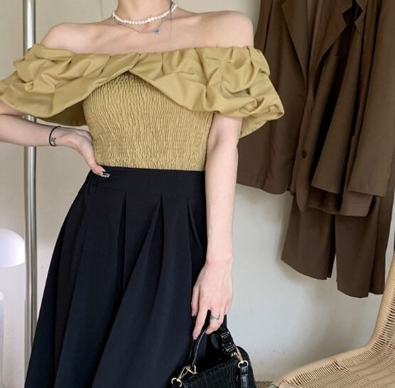 トップス シャツ 50076 ワンショルダー 大人可愛い おしゃれ お洒落 ガーリー キュート ラブリー 存在感 夏 春 20代 30代 デート 休日 パーティー お出かけ イベント 女子会 ワンサイズ カーキ 白 黒 送料無料