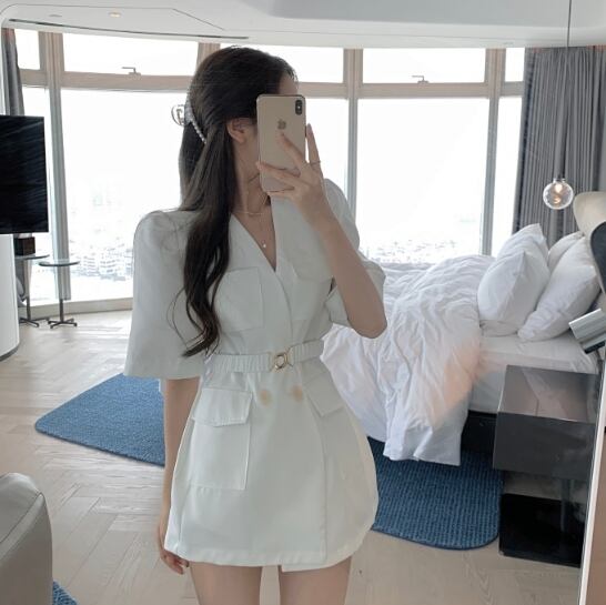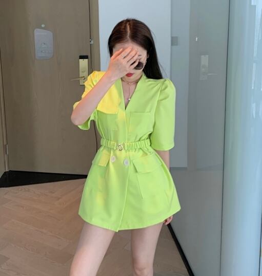コート 半袖 ミドル丈 50077 Vネック 大人可愛い 上品 レトロ きれいめ おしゃれ お洒落 シンプル ガーリー 無地 夏 20代 30代 デート 休日 お出かけ イベント 女子会 S M 白 黄緑 送料無料