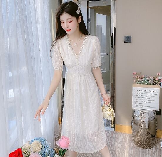 ワンピドレス ロング丈 50147 半袖 大人可愛い おしゃれ お洒落 ガーリー キュート 春 夏 20代 30代 デート 休日 パーティー お出かけ イベント 女子会 S M L XL アプリコット 送料無料
