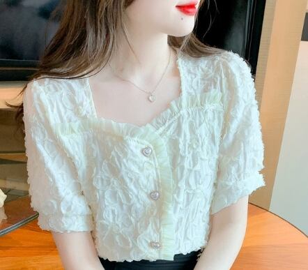 トップス シャツ 50163 半袖 かわいい ガーリー キュート おしゃれ お洒落 きれいめ 夏 20代 30代 休日 お出かけ イベント 女子会 S M L XL アプリコット 送料無料