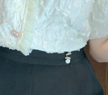 ■デイリーコーデに欠かせない、可愛らしさとおしゃれさが詰まったトップスが登場しました。ふんわりとした半袖シャツは、レースの切り替えが施されたガーリーなデザインが魅力です。洗練されたカラーのアプリコットは、夏らしい爽やかさときれいめの雰囲気をプラスしてくれます。タックインすることで、脚長効果も期待できますよ。