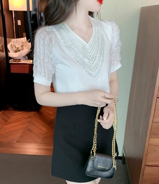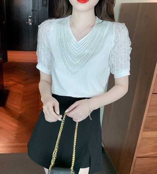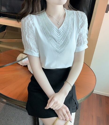 トップス シャツ 50165 半袖 Vネック かわいい おしゃれ お洒落 ガーリー キュート 上品 夏 20代 30代 休日 イベント お出かけ 女子会 S M L XL 2XL 送料無料