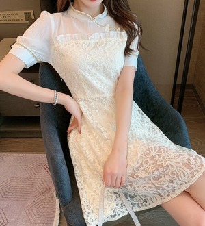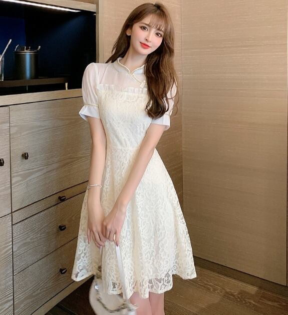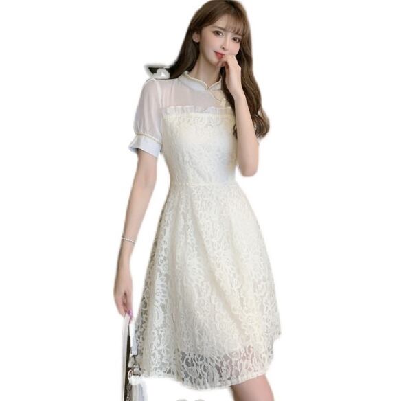 ワンピース ショート丈 50168 半袖 レース かわいい 上品 きれいめ シンプル おしゃれ お洒落 ガーリー キュート 夏 20代 30代 デート 休日 パーティー イベント お出かけ 女子会 S M L XL 白 送料無料