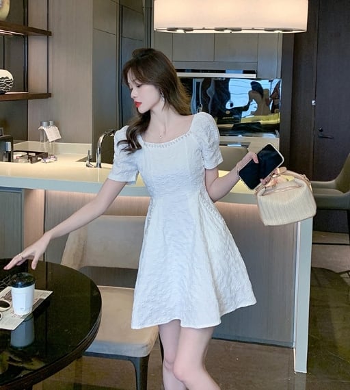 ワンピース レディース 2色 ミニ丈 50181 半袖 かわいい きれいめ シンプル レトロ おしゃれ お洒落 ガーリー カジュアル 清潔感 上品 白 黒 ホワイト ブラック ハイウエスト エレガント 個性的 Aライン ママファッション ママコーデ 夏 20代 30代 40代 通勤 通学 オフィス デート 休日 お出かけ イベント 女子会 S M L XL インスタ映え 送料無料