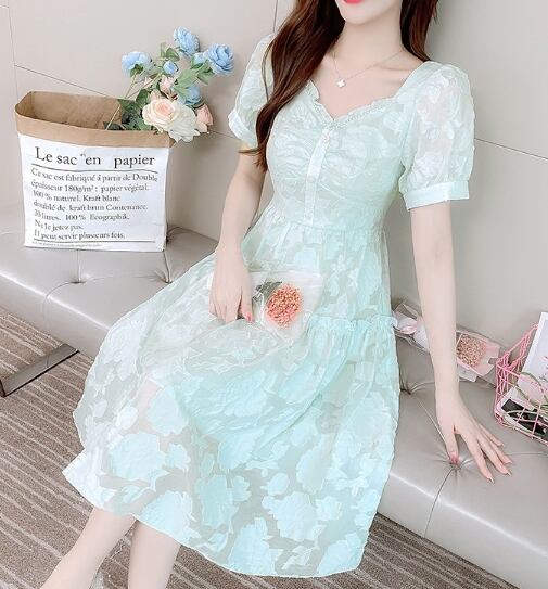 ワンピドレス ロング丈 ドレス レディース スクエアネック 胸ボタン 後ろ姿 花柄 透け感 美しい 人気 トレンド ママコーデ オルチャン 50184 半袖 大人可愛い 上品 おしゃれ お洒落 清潔感 個性的 レトロ シンプル きれいめ ガーリー キュート 春 夏 秋 20代 30代 40代 パーティー イベント 普段使い 女子会 S M L XL インスタ映え 送料無料