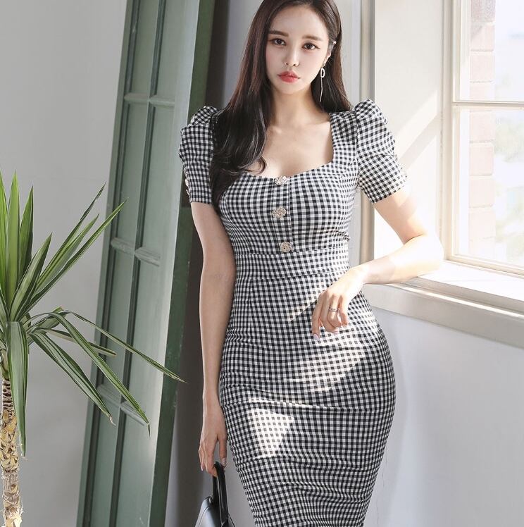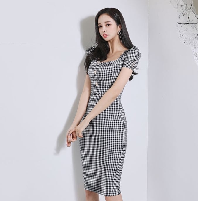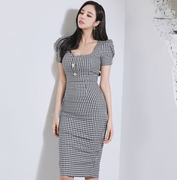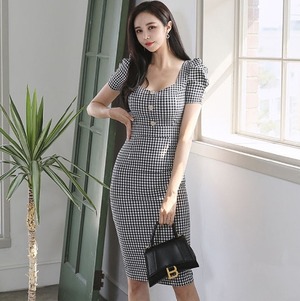 送料無料 ドレス ワンピース ワンピドレス ミディアム丈 パフスリーブ 半袖 スクエアネック スリム 細身 Iライン タイトスカー ハイウエスト チェック柄 大人可愛い 上品 ガーリー キュート かわいい きれいめ シンプル カジュアル おしゃれ かっこいい レトロ こなれ感 個性的 クール エレガント 主役級 存在感 脚長 美脚 夏 10代 20代 30代 40代 お出かけ イベント 女子会 OL 学生 デート 旅行 休日 ショッピング コーデ 普段使い インスタ映え S M L XL 50729