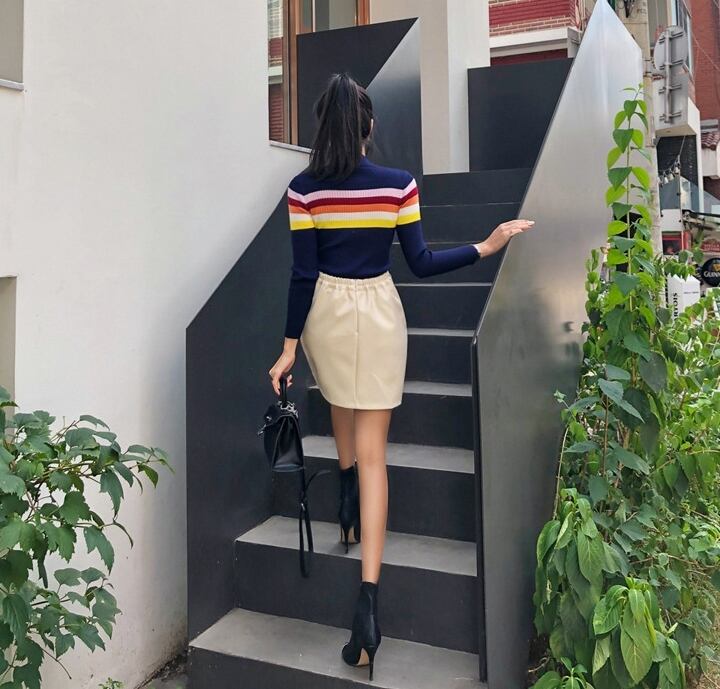 ▪シンプルながらも存在感のあるデザインは、大人可愛い雰囲気を演出します。ボーダー柄の華やかさと、ハイネックの上品さが絶妙にマッチしています。秋冬の季節感を引き立てる一着となり、お出かけ時や普段使いにぴったりです。大人女子やOLの方にもおすすめなアイテムですよ。