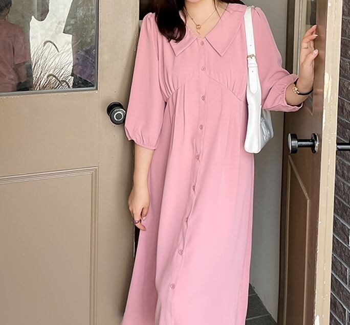 送料無料 ワンピース シャツ ロング丈 長袖 Aライン ハイウエスト かわいい ゆったり シンプル おしゃれ ガーリー キュート 体型カバー 着痩せ 着回し 春 夏 秋 10代 20代 30代 40代 プチプラ デート 休日 お出かけ 女子会 大きいサイズ XL 2XL 3XL 4XL 5XL 大きいサイズ 黒 ピンクインスタ映え 50842