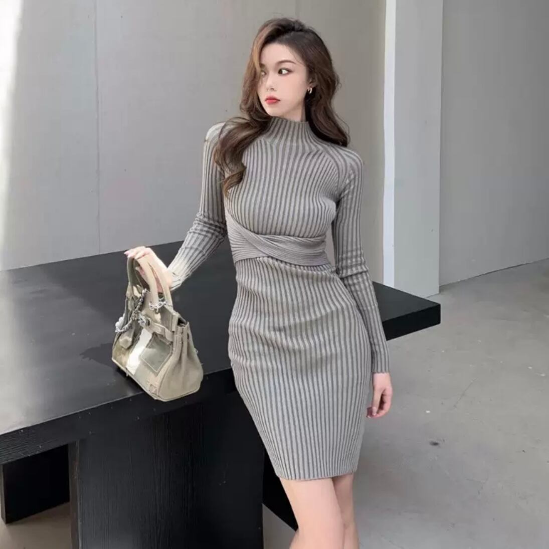 ワンピース ニットワンピース ニットワンピ 10013 ショート ひざ丈 膝上 袖あり 長袖 萌袖 タートルネック スリム タイト 細身 ストレート Iライン リブ リブニット ニット 大人可愛い きれい シンプル カジュアル 大人 上品 おしゃれ お洒落 かっこいい 大人女子 クール セクシー モダン 主役級 セクシー スタイリッシュ 無地 春 秋 冬 レディース デート お出かけ 女子会 休日 パーティー 韓国 韓国系 オルチャン ファッション コーデ スタイル モテ 穴あき 美脚 脚長 送料無料