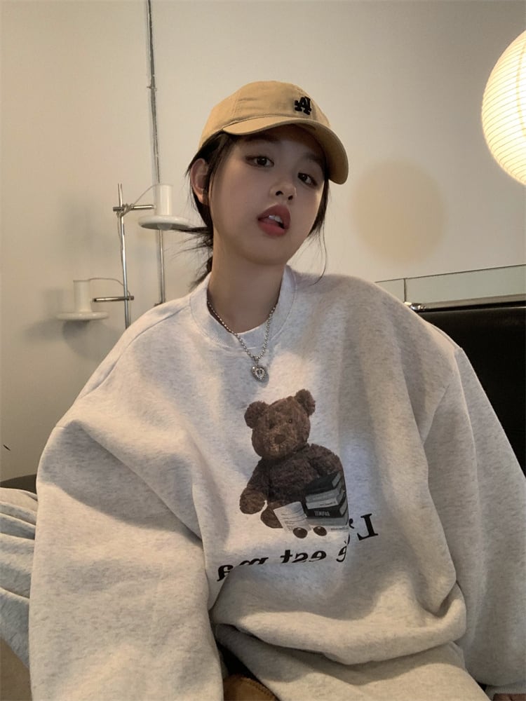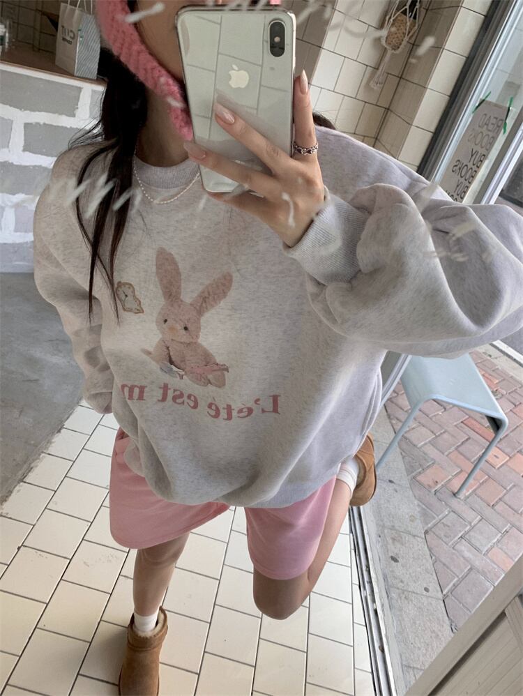 トップス プルオーバー トレーナー スウェット 4248 部屋着 ミディ丈 袖あり 長袖 ドロップショルダー ラウンドネック 厚手 大人可愛い シンプル カジュアル 大人 お洒落 大人女子 こなれ感 ラフ キュート ガーリー ルーズ 主役級 抜け感 うさぎ くま プリント 春 秋 冬 20代 30代 40代 ママ 学生 通学 デート お出かけ 女子会 お泊まり 休日 旅行 着回し 普段使い 重ね着 韓国系 楽ちん 防寒 体系カバー 定番 トレンド 流行 インスタ映え ワンサイズ ピンク ブラック 送料無料