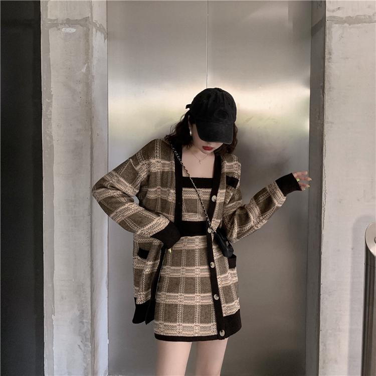 【3点セット】 トップス スカート アウター スリーピース カーディガン キャミソール 上着 ミニスカート ニットスカート ミニ ミニ丈 ショート ショート丈 袖あり 長袖 タイト ハイウエスト ニット 上下セット スリーピース お得 かわいい 大人可愛い おしゃれ こなれ感 ラブリー ガーリー 個性的 クール セクシー 主役級 チェック柄 秋 10代 20代 レディース 女性用 重ね着 ファッション コーデ スタイル モテ 美脚 女子会 お泊まり 休日 イベント リゾート 旅行 S M L 送料無料