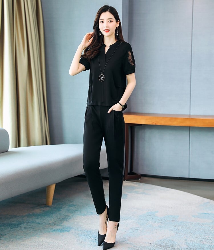 2点セット 袖シアー切り替え プルオーバー テーパードパンツ 10301 セットアップ 2タイプ トップス オーバーサイズ バックボタン ミディアム丈 長袖 半袖 襟なし スキッパー 袖透け感 刺繍入り シースルー ボトムス パンツ アンクル丈 ロング丈 ウエストゴム サイドポケット シンプル カジュアル きれいめ おしゃれ こなれ感 春 秋 無地 レディース ママ ミセス 女の子 OL 通勤 学生 通学 お出かけ 普段使い 着回し S M L XL 2XL 3XL 大きいサイズ ブラック