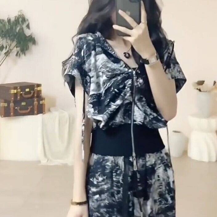 ▪このセットアップは、女性の大人っぽいカジュアルなスタイルにぴったりです。夏にもぴったりの水墨画風のプリント柄が魅力的で、おしゃれでかっこいい雰囲気を演出します。脚長効果もあり、スタイルアップも叶います。お出かけや休日、運動時の普段使いや部屋着としてもおすすめです。