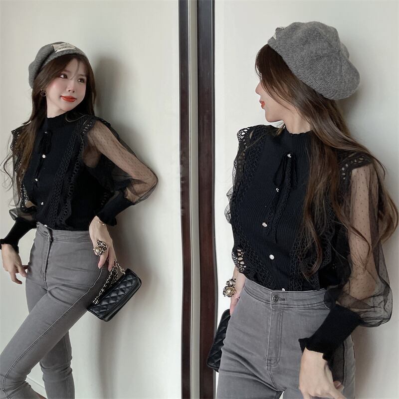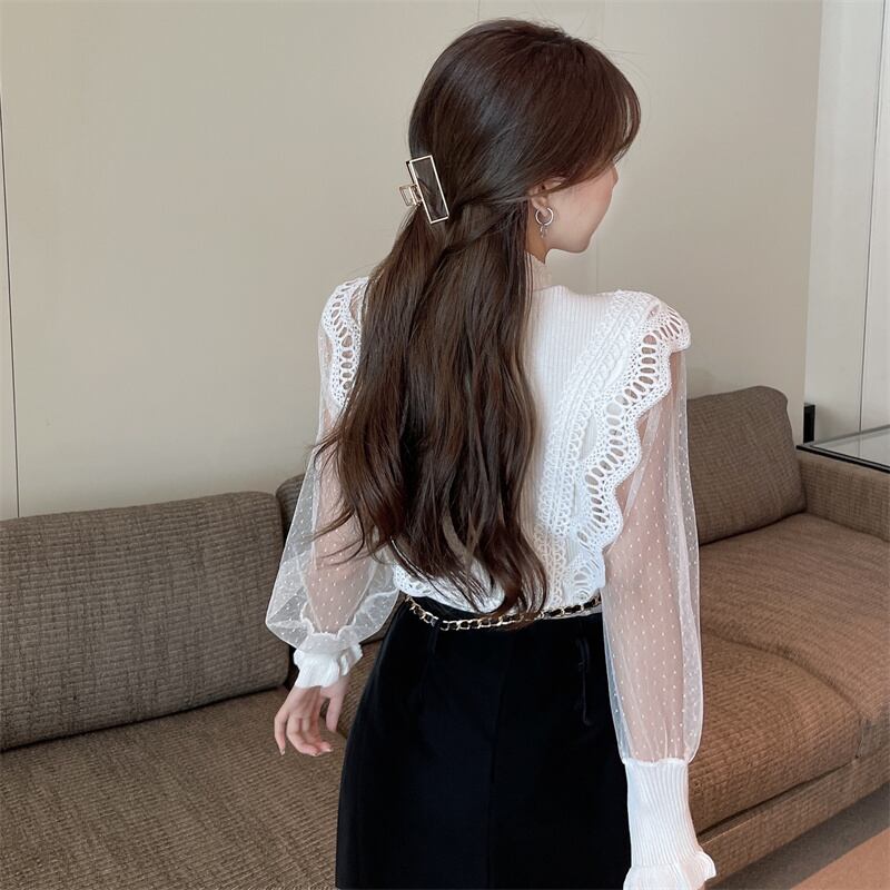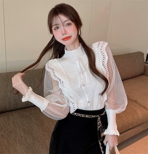 トップス ショート丈 長袖 ランタンスリーブ 10129 ポロカラー ハーフハイカラー 透け感 シースルー ウール 薄手 ビスコース フェイクツーピース 大人可愛い きれいめ カジュアル 上品 お洒落 大人女子 こなれ感 キュート クール 存在感 とろみ感 無地 春 秋 誕生日 10代 20代 女性 OL 通勤 学生 通学 デート お出かけ お泊まり 休日 イベント 旅行 高原 ガーデン レストラン ショッピング ファッション コーデ モテ ギフト インスタ映え S M L 黒 白 送料無料