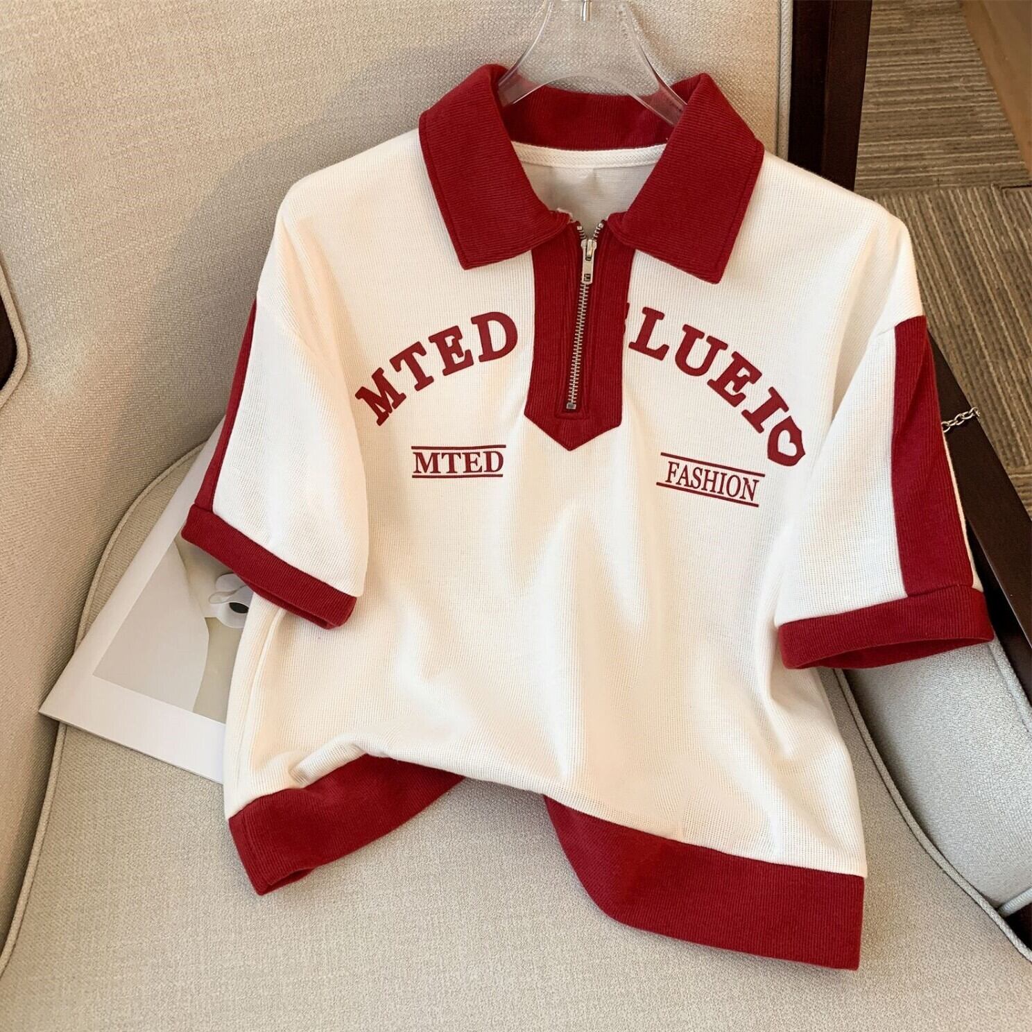 2点セット 配色デザイン 胸ロゴトップス ショートパンツ 11082 セットアップ トップス カットソー ハーフジップアップ 半袖 五分袖 ドロップショルダー 襟付き 首元ファスナー ゆったり ボトムス ショーパン ズボン 膝上 ミニ丈 ミディアム丈 ウエストゴム ドロストコード付き サイドポケット ハイウエスト シンプル カジュアル おしゃれ こなれ感 スポーティー 無地 春 夏 レディース ママ 女の子 お出かけ 休日 普段使い 部屋着 ルームウェア 運動 体系カバー M L XL 2XL バイカラー