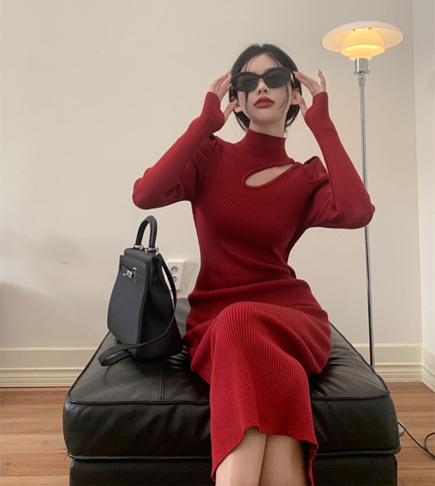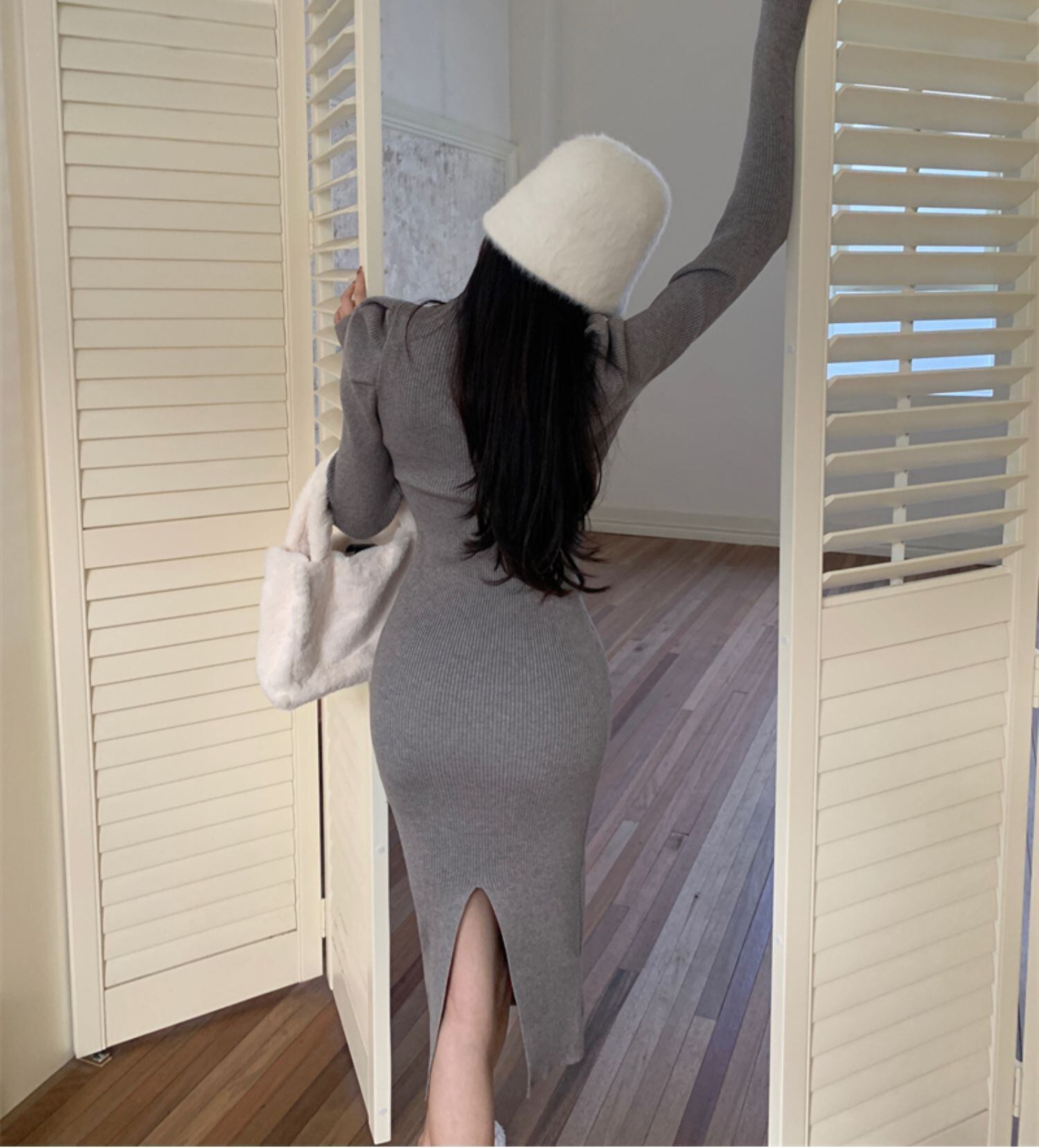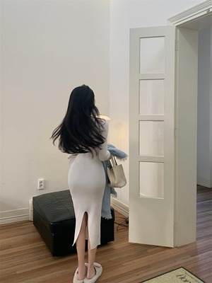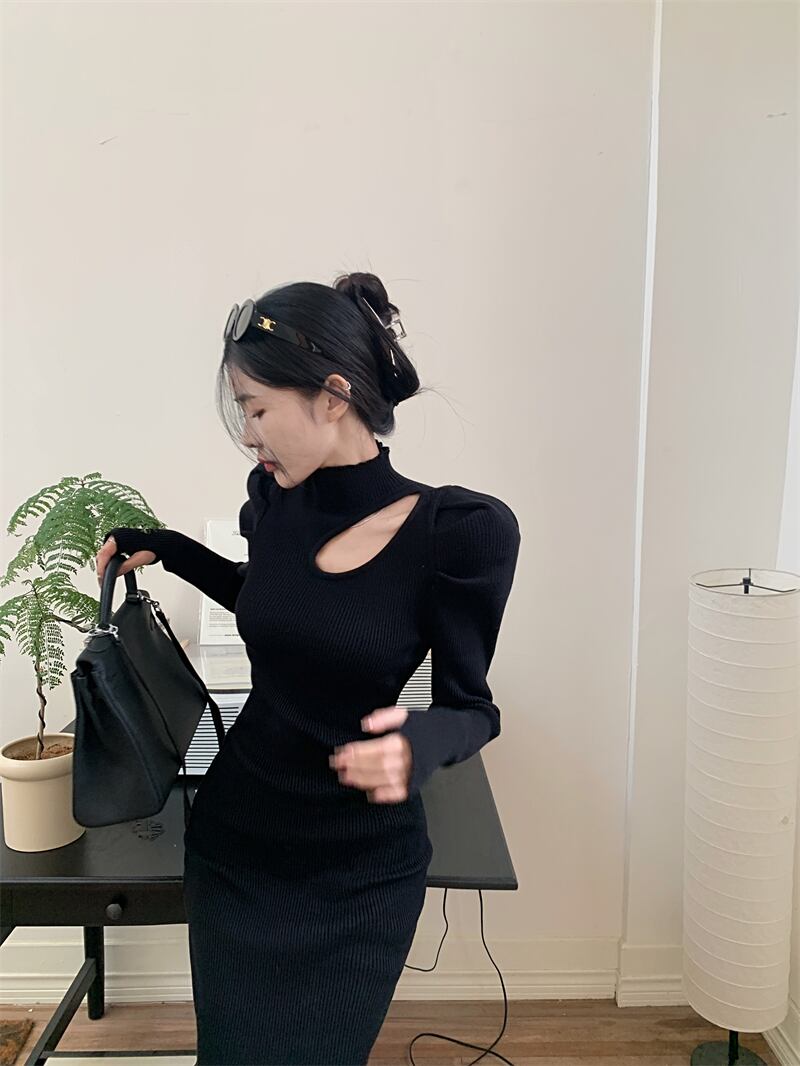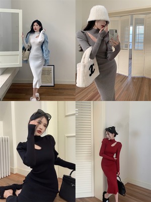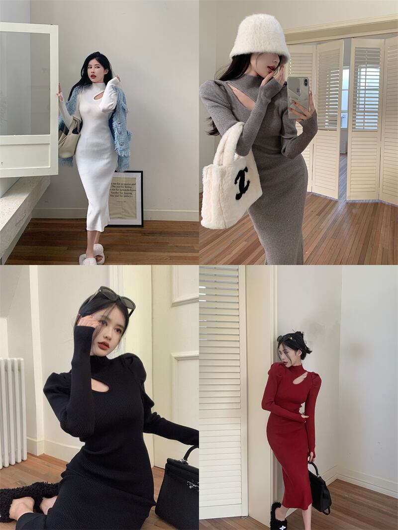 ワンピース プルオーバー ミドル丈 長袖 4266レギュラー袖 ハーフハイカラー スリム フィット スリット ハイウエスト ニット シンプル お洒落 大人 こなれ感 クール セクシー 甘い 無地 春 秋 冬 誕生日 クリスマス バレンタイン 10代 20代 30代 女性用 ママ OL 通勤 学生 デート お出かけ 女子会 休日 イベント リゾート 旅行 ホテル レストラン ショッピング オールマッチ ファッション スタイル モテ 美脚 ギフト インスタ映え S M L XL 黒 白 赤 灰色 送料無料