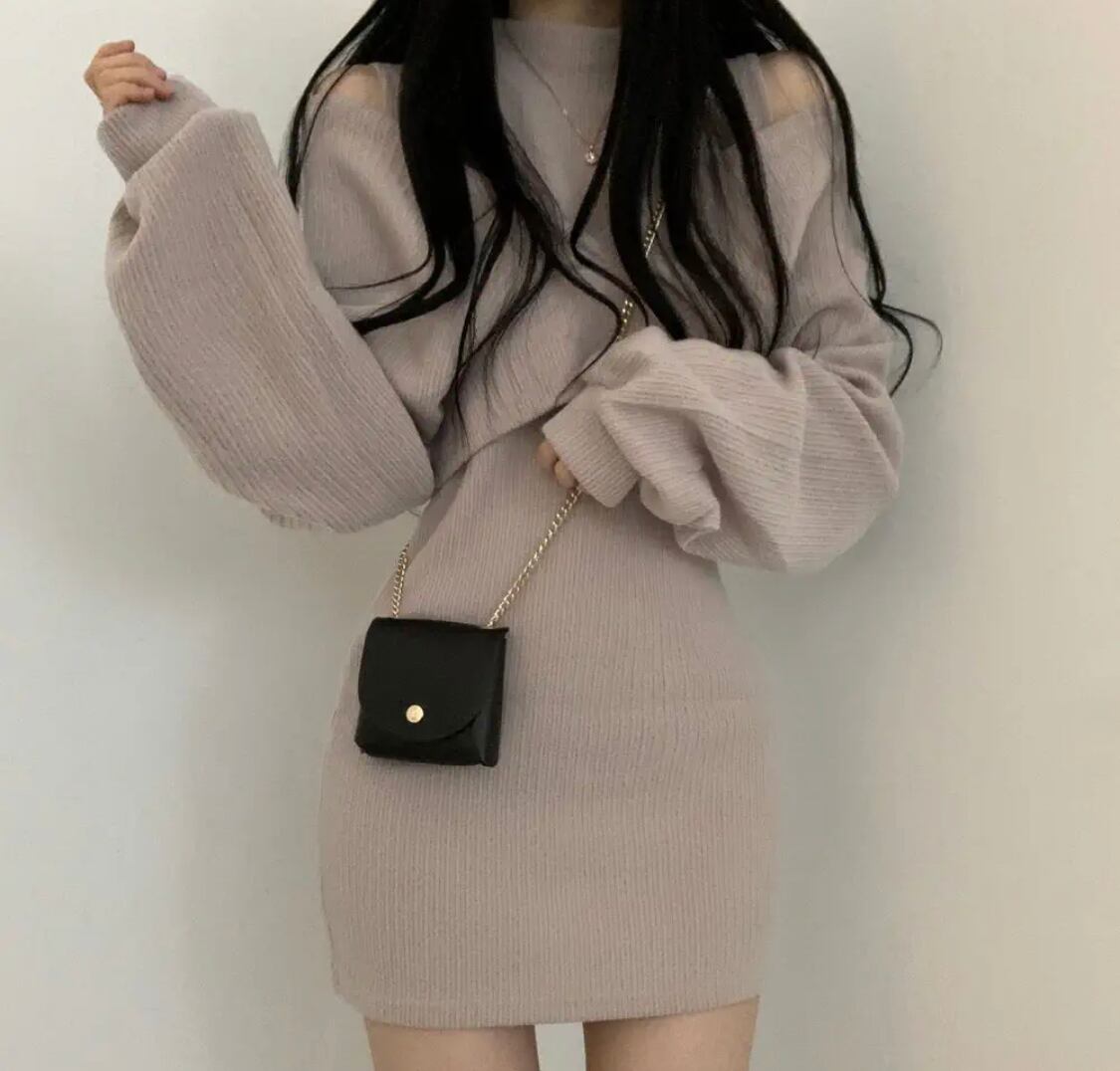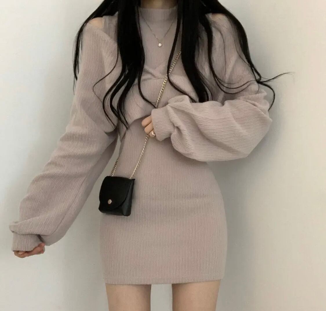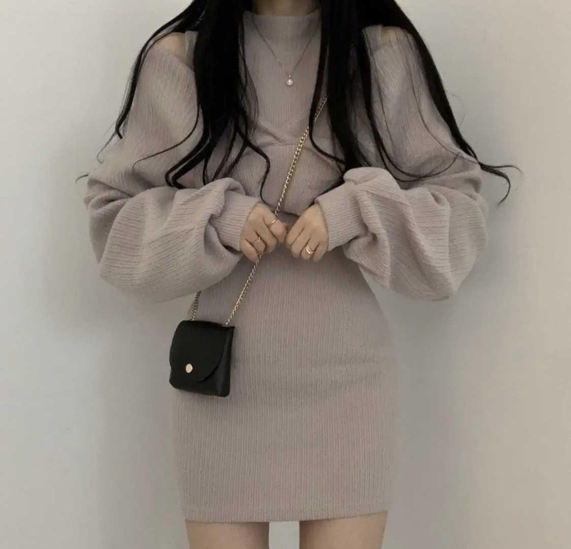2点セット ノースリワンピ ボリューム袖ニット 3144 ワンピース セーター ミニスカート タイトスカート ニットスカート ニットワンピース ニットワンピ ミニ ショート 膝丈 袖あり ノースリーブ 長袖 ボリューム袖 萌袖 ハイネック タートルネック 襟なし スリム タイト 細身 ストレート Iライン リブ 2way ニット ツーピース 大人可愛い きれいめ シンプル 大人 上品 大人女子 モダン セクシー フェミニン 無地 春 秋 冬 レディース デート お出かけ 女子会 重ね着 送料無料