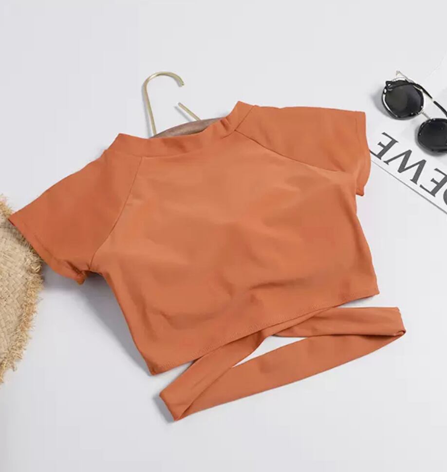 ▪華やかで可愛い2点セット水着が登場しました!フリルスカートとクロスデザインが女性らしさを引き立て、セパレートタイプで着脱も簡単です。体型カバーも叶えてくれる優れもので、バストにはパッドも入っているので安心感もあり、この水着を着れば、スタイルアップが得られます。