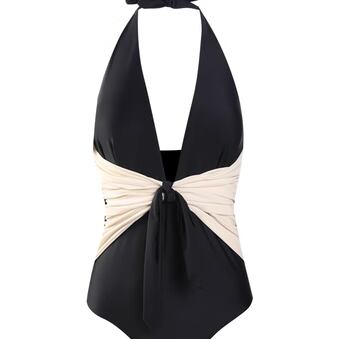 水着 スイムウェア ワンピース水着 6091 ワンピース ホルターネック パッド付き リボン ウエストマーク ウエストリボン 胸元 谷間魅せ 大人可愛い きれいめ セクシー 大人 大人っぽい おしゃれ お洒落 レトロ 主役級 存在感 女っぽ 個性的 クール スタイリッシュ モダン 無地 20代 30代 40代 50代 レディース 女性用 ママ ミセス 夏 海 ビーチ プール リゾート 美脚 スタイルアップ 美スタイル ファッション スタイル インスタ映え M L XL ブラック ベージュ 送料無料