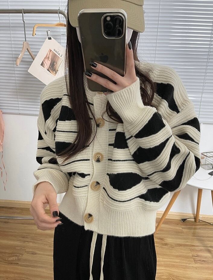 トップス カーディガン レギュラー丈 袖あり 長袖 3289 襟なし ルーズ 前開き ニット 大人可愛い きれいめ シンプル カジュアル 大人 上品 お洒落 かっこいい レトロ 大人女子 こなれ感 ラフ 存在感 とろみ感 抜け感 ボーダー 秋 冬 10代 20代 30代 40代 50代 60代 レディース デート お出かけ 女子会 お泊まり 休日 アウトドア 旅行 ショッピング 普段使い 韓国系 オルチャン コーデ スタイル 楽ちん トレンド 流行 S M L XL ホワイト ブラウン ピンク 送料無料