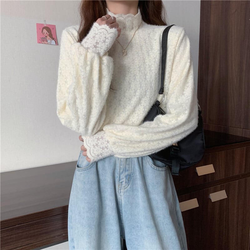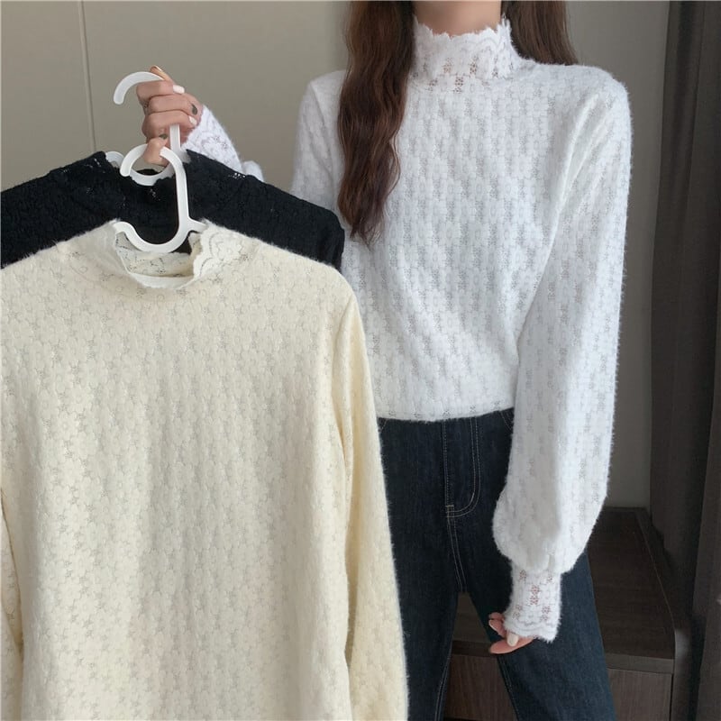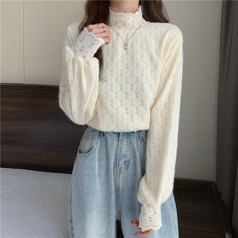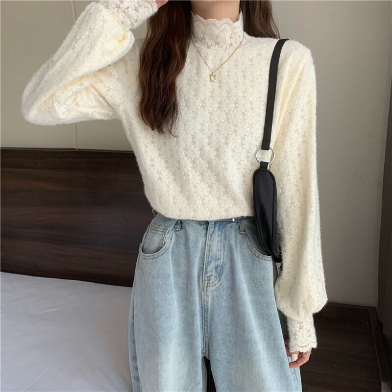 トップス ニット ハイネック レース花柄 長袖 4190 インナー 裏地付き 暖かい かわいい 大人可愛い きれいめ シンプル カジュアル 大人 上品 おしゃれ レトロ 大人女子 こなれ感 キュート クール エレガント とろみ感 抜け感 スタイリッシュ 秋 冬 10代 20代 30代 40代 OL 通勤 学生 通学 デート お出かけ 女子会 休日 イベント リゾート 着回し 普段使い 重ね着 韓国 韓国系 オルチャン ファッション コーデ スタイル モテ ワンサイズ ベージュ ブラック ホワイト 送料無料