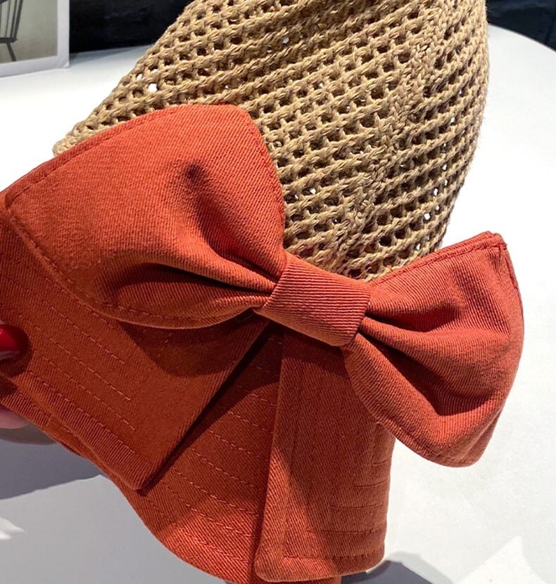■配色デザインの透かし編み切替えにバックリボンが可愛らしいハットは、ママから女性まで幅広く使えるアイテムです。