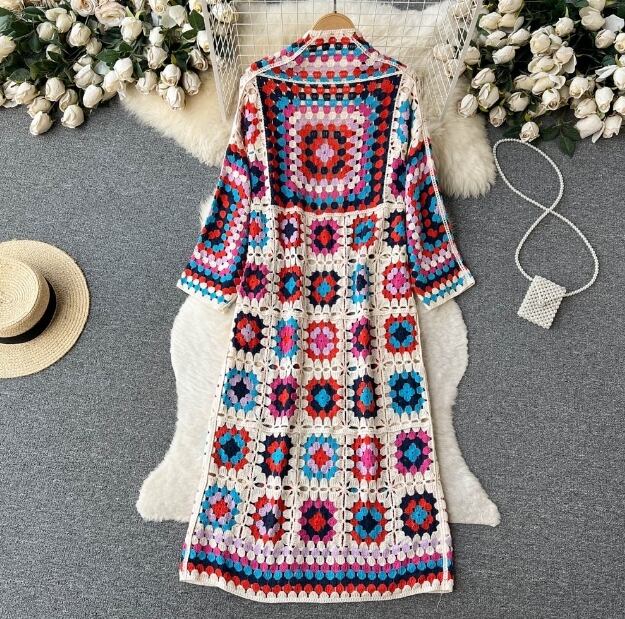 【送料無料】 カーディガン 長袖 ロング丈 レトロ 春 秋 赤 青 20代 30代 レディース N1047
