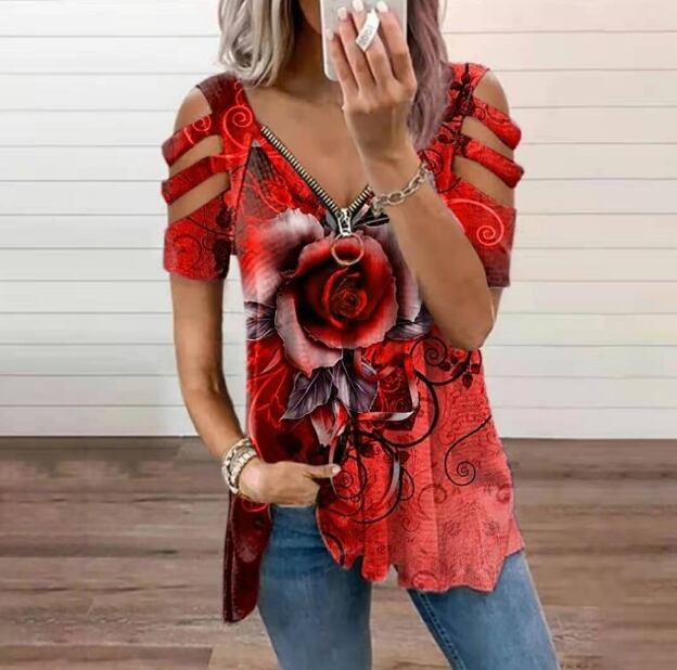 【送料無料】 トップス 半袖 Vネック カジュアル 夏 赤 ピンク 水色 20代 30代 レディース N1057