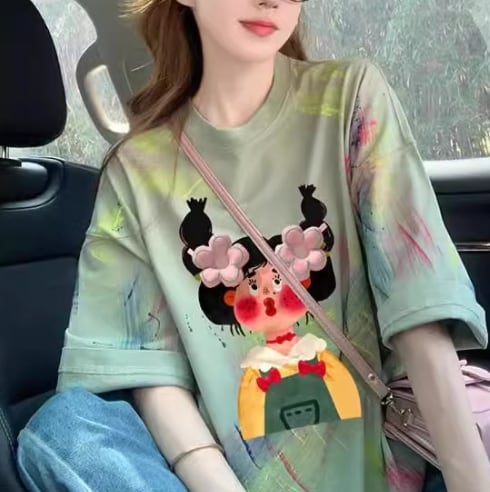 【送料無料】 Tシャツ 立体花柄 プリント柄 半袖 ラウンドネック 大人可愛い きれいめ レトロ シンプル ラフ カジュアル おしゃれ フェミニン シック ゆったり 体型カバー 着痩せ 韓国系 オルチャン 人気 トレンド 新作 春 夏 20代 30代 40代 レディース お出かけ デート ママ 通勤 通学 オフィス OL デイリー 普段着 着回し インスタ映え 70144