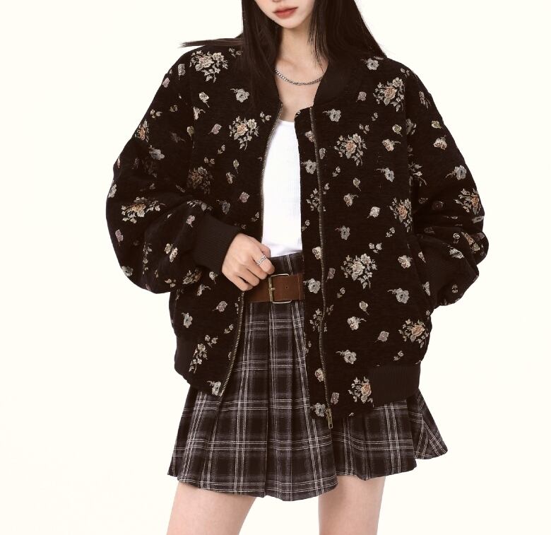 ▪大人可愛いスタイルにぴったりのジャケットが登場!華やかなフラワー柄が、あなたのおしゃれを一層引き立て、きれいめからカジュアルまで幅広く活躍します。