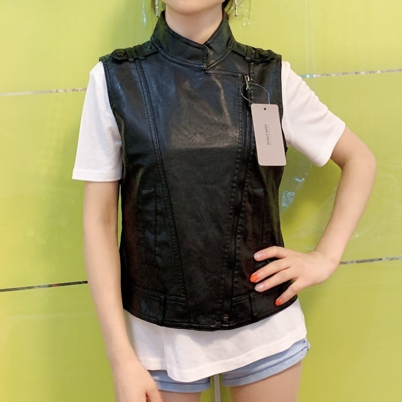 ▪おしゃれ感と着心地を両立させたベスト トップスです!前開きデザインのこのレザーベストはノースリーブで、重ね着に最適です。ゆったりとしたシルエットが体型カバーに役立ち、大人可愛いスタイルを演出します。