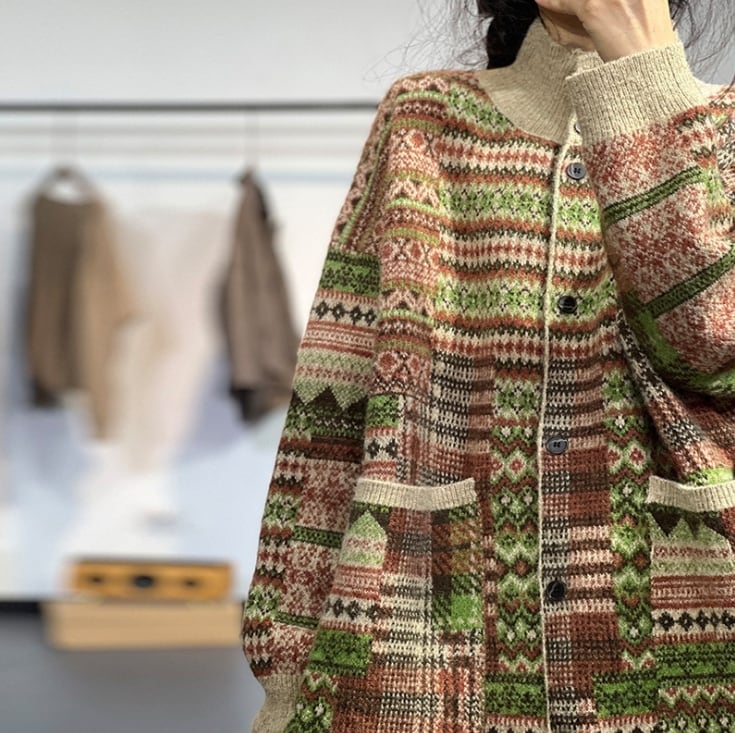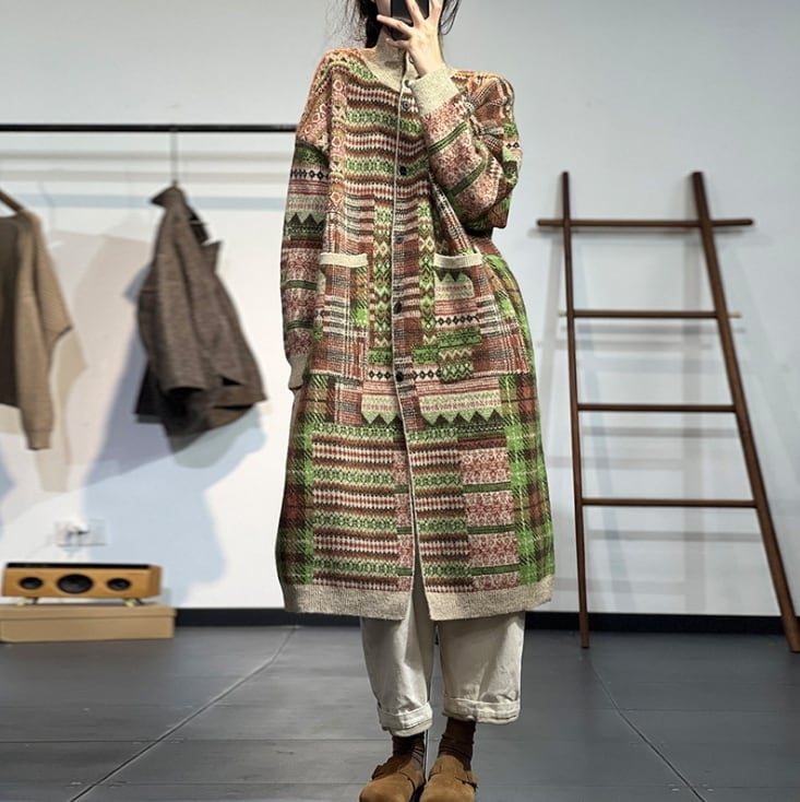 【送料無料】 コート アウター トップス ニット 幾何学柄 前開き 長袖 ロング ラウンドネック ポケット 大人可愛い きれいめ おしゃれ ラフ カジュアル フェミニン シック ゆったり 体型カバー 着痩せ 韓国系 オルチャン 人気 トレンド 新作 秋 冬 20代 30代 40代 お出かけ 旅行 リゾート デート ママ 通勤 通学 デイリー 普段着 着回し インスタ映え 70194