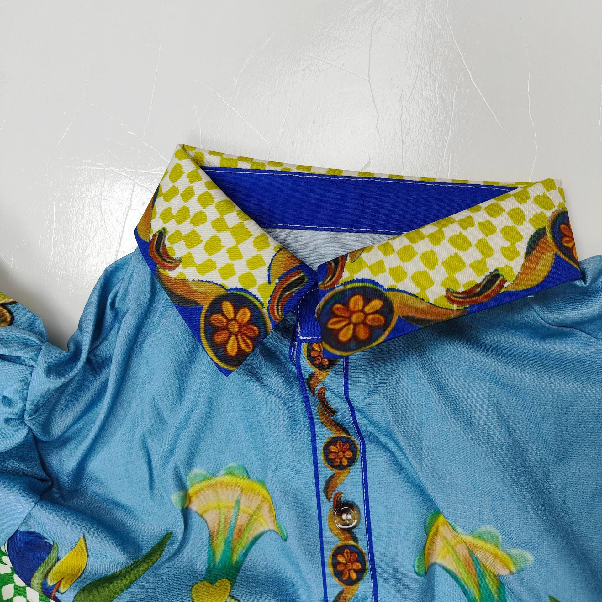 【送料無料】 ツーピース トップス ランタンスリーブ パンツ ロング丈 レトロ カジュアル 20代 30代 レディース N1128